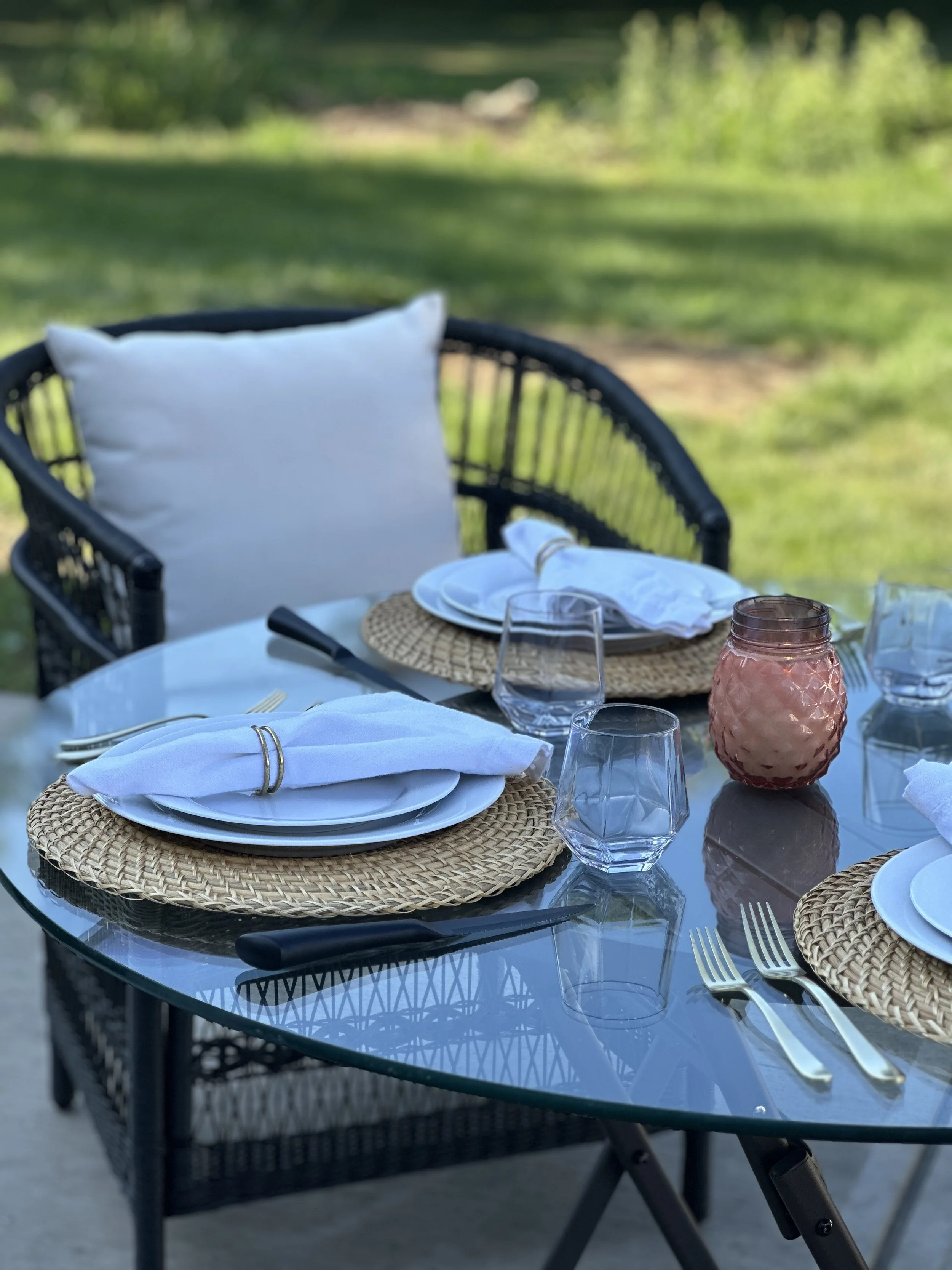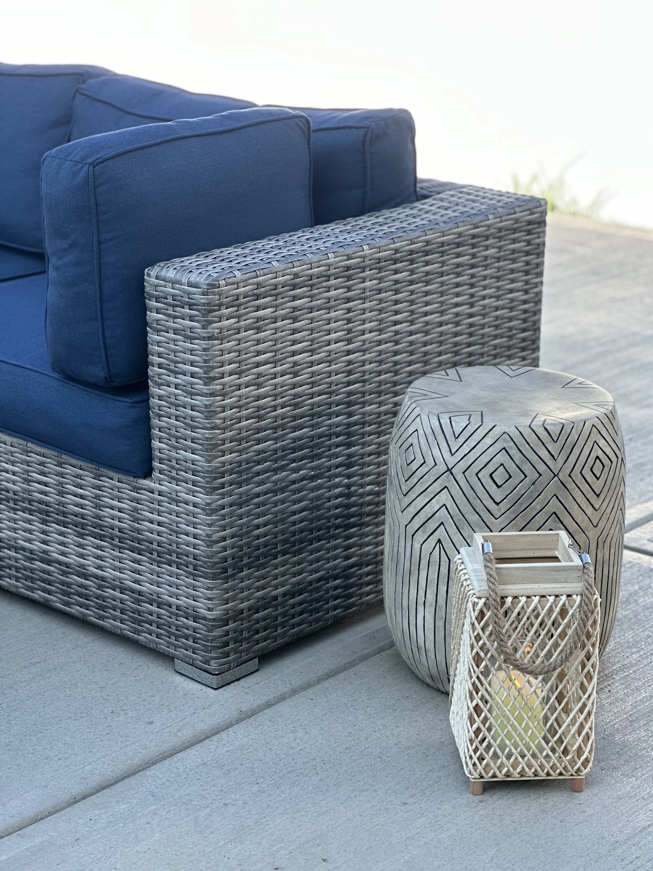 Don't forget the finishing touches: Add personality to your patio with accessories like outdoor rugs, planters, and string lights.